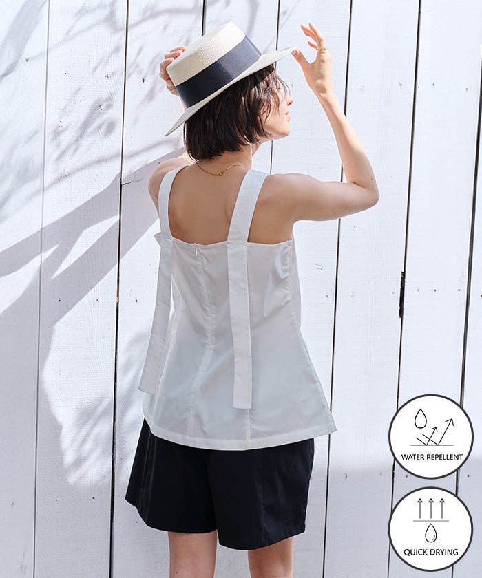 他の画像を見る 【新作★72H限定10%OFF★10日11時カラ】【水陸両用】 撥水クルーネックノースリーブブラウス/ラッシュガード【メール便可/100】 定価 ¥ 5,379 のところ 価格 ¥ 4,841 税込 販売開始前です。 販売期間 2026/04/10 11:00 〜 2026/04/13 10:59 お気に入りに登録する