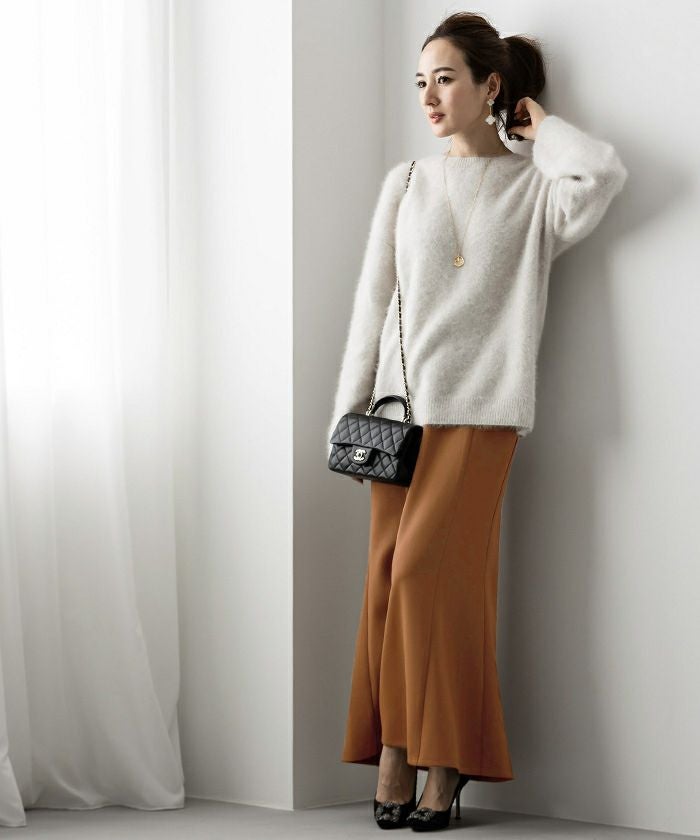 肌触り柔らかい素材で個人的にはチクチクしませんでした。どのカラーも合わせやすく、使い勝手の良い万能なトップスです。私はスカートと合わせて大人可愛いコーディネートを楽しみたいです。