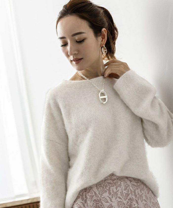・襟ぐりの絶妙な開きを活用し、シャツなどとのレイヤードスタイルにも◎