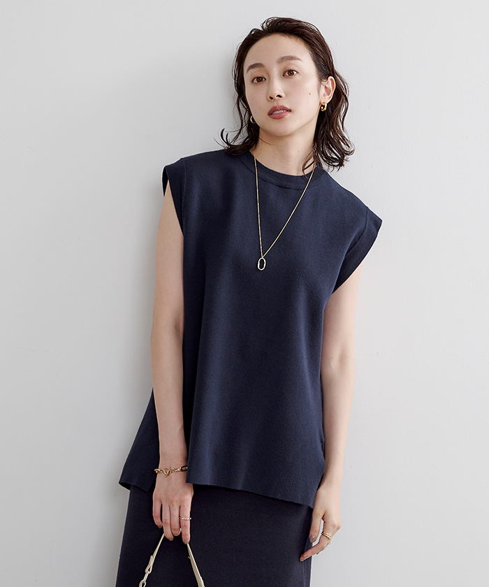 ・しっかりとした編地で、身体のラインを拾いにくいのも嬉しいポイント。