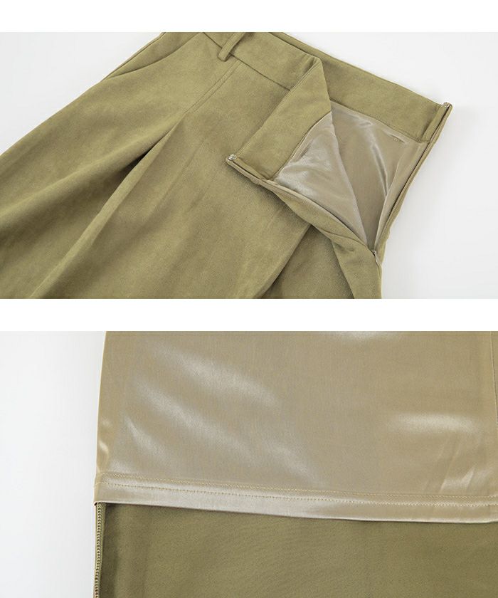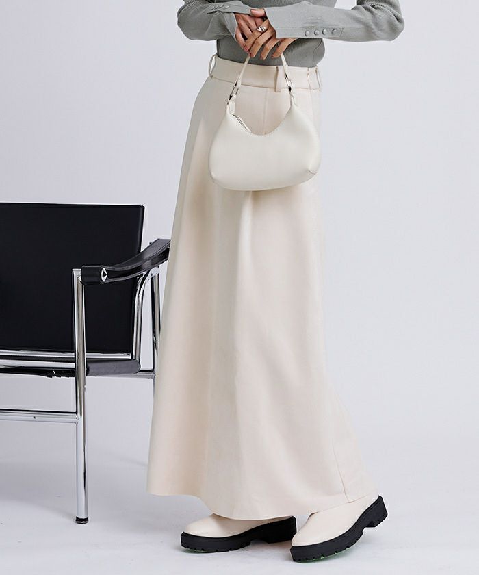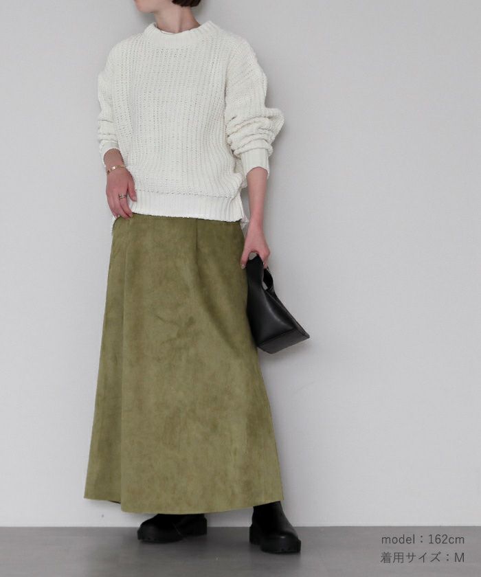 ・柔らかく肌触りの良いフェイクスエード素材を使用したマキシ丈タックスカート。