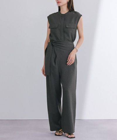 リネンライクヘンリーネックオールインワン