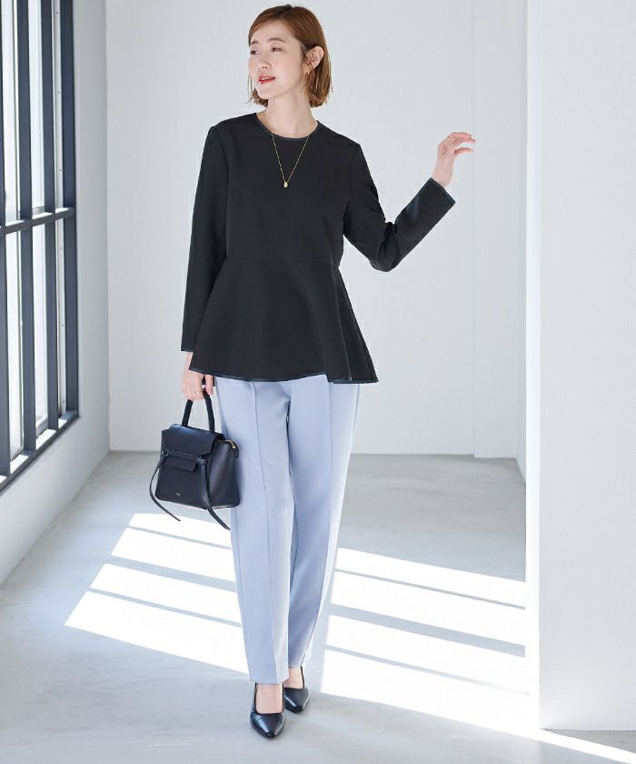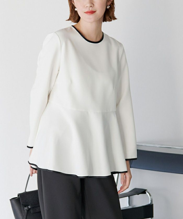 カラーによって異なる配色が映えるペプラムトップス。
