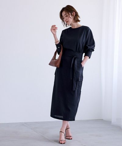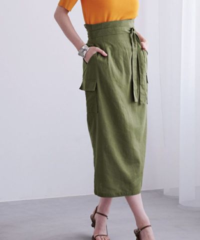 程よい丈感にこだわったリネン混ロングタイトスカート。