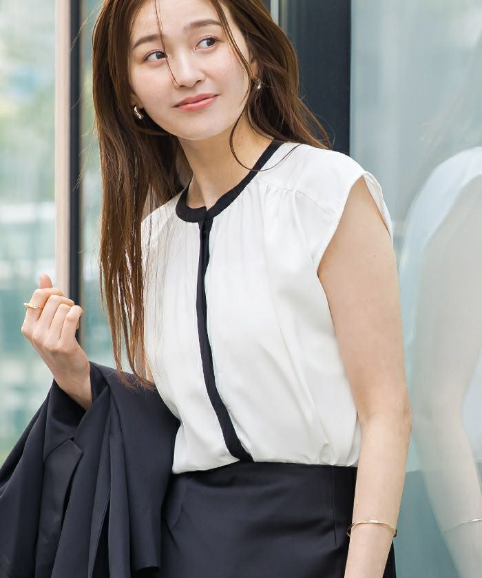 比翼仕立てのバンドカラーですっきり見え。
