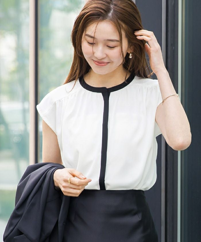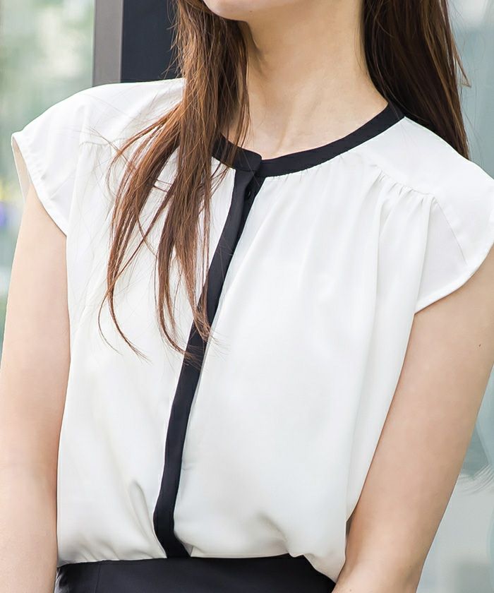 フレンチスリーブバンドカラーブラウス【メール便可/80】