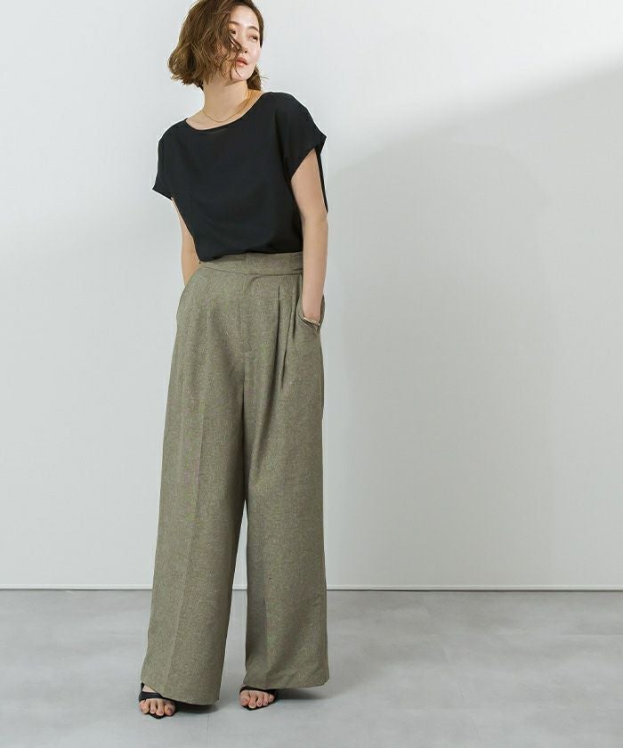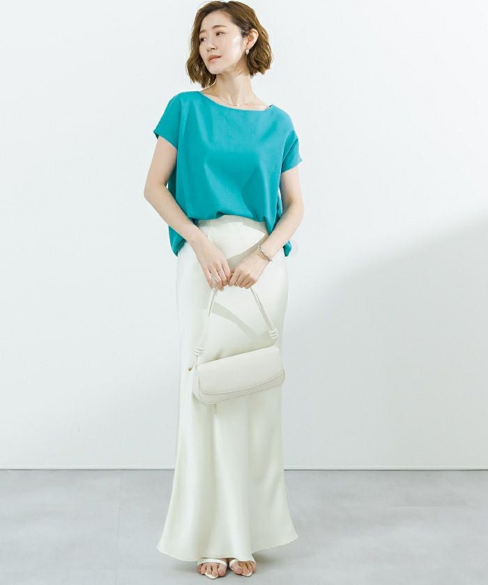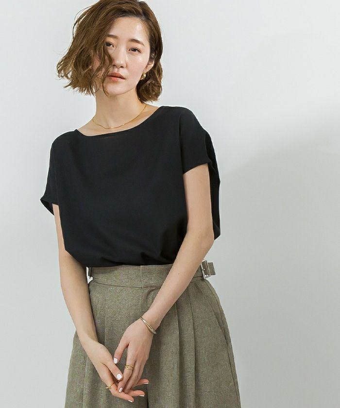 ボートネックで顔周りのすっきり見えが叶います。