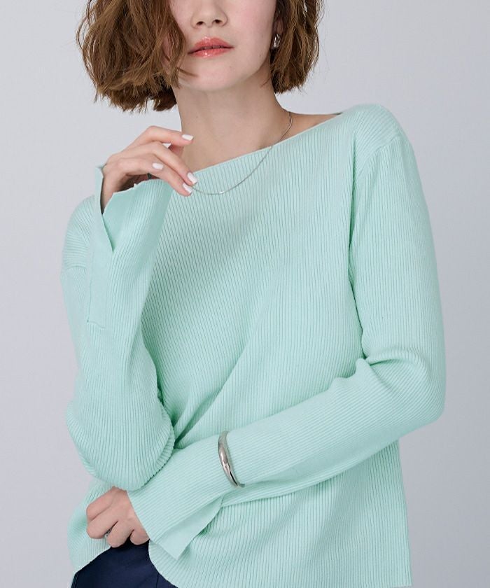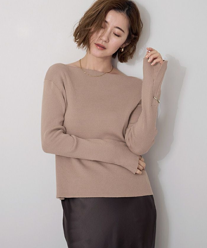 【累計販売数1万枚突破!】ボートネックスリットスリーブリブニット【メール便可/100】