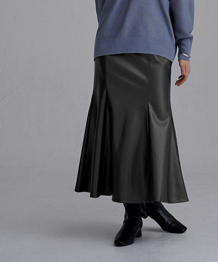 フェイクレザーパネルマーメイドスカート
