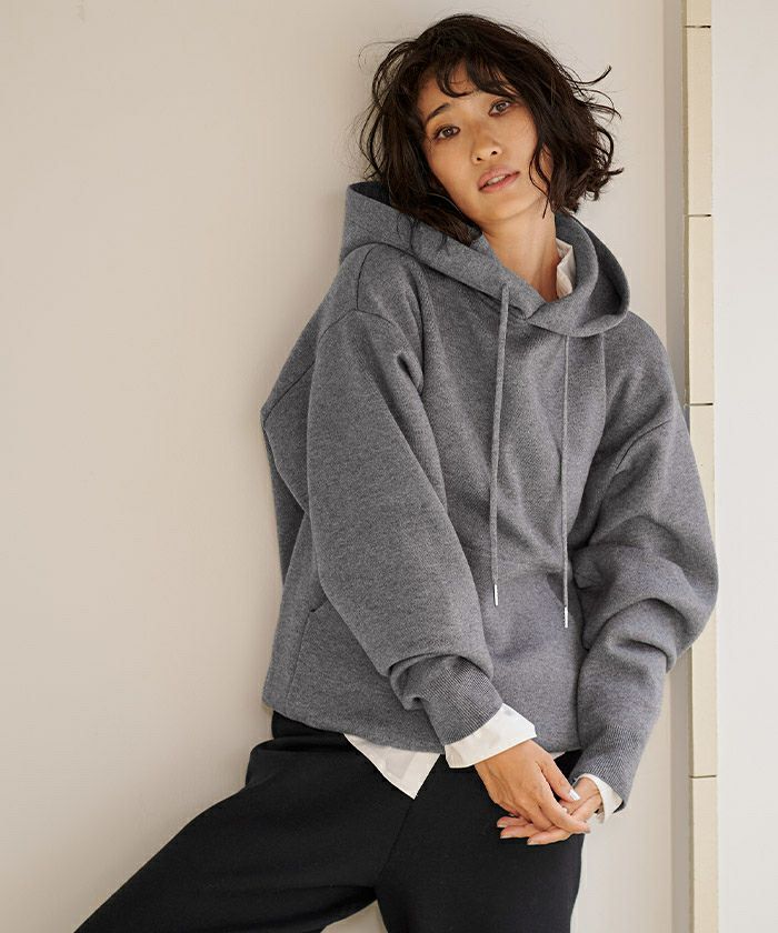 程良くゆったりとしたサイズ感のコットンウールブレンドニットパーカー。