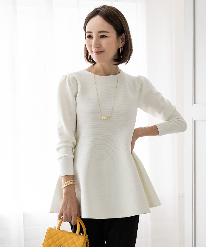 手首が見える袖丈に設定しており、ブレスレットなどのアクセサリーが見える女性らしいディテール。