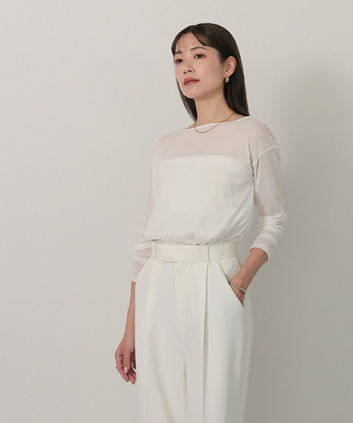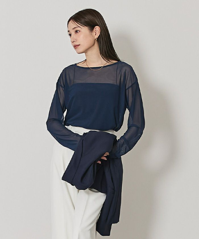 透け感を活かしたインナー使いで着こなしに変化がつけられる一枚。