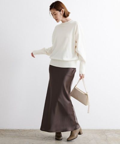 スウェットライクに着られる、大人っぽいクルーネックデザイン。