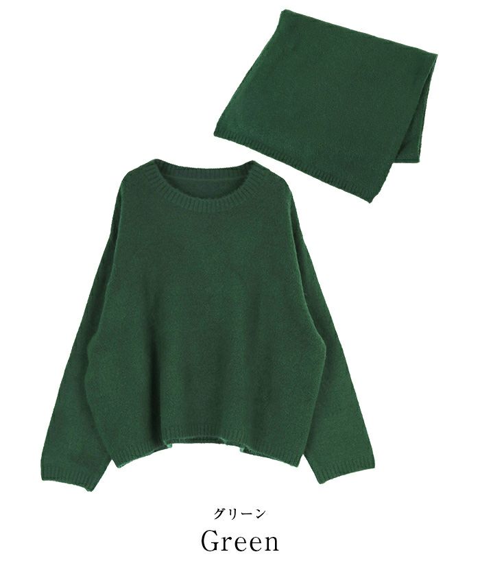 ストールがセットになった使い勝手の良いラウンドネックニット。