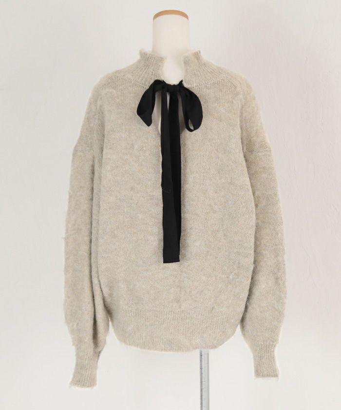 後ろのリボンデザインが今年らしい甘めのウールブレンドニット。