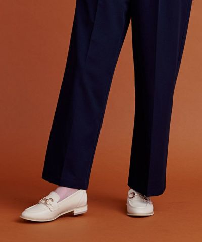 ゴールドのビットデザインが女性らしさも演出するローファー。