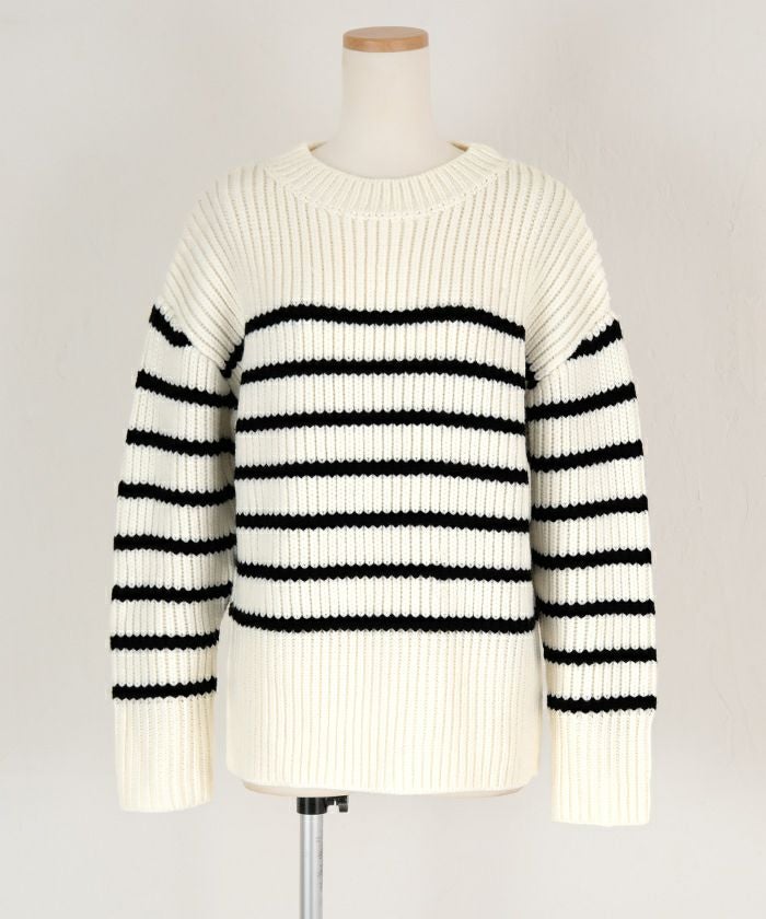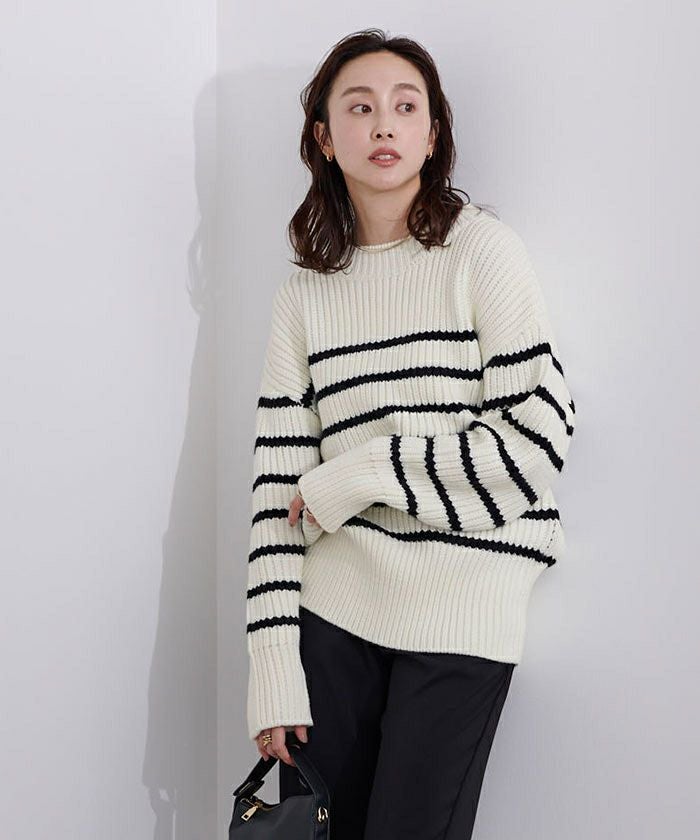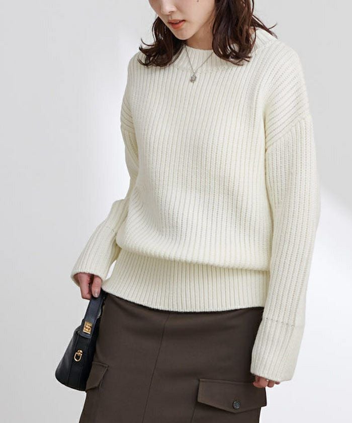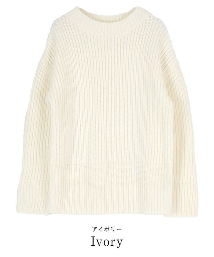 ドロップショルダーのゆったりとしたシルエットでざっくりと着られる大人なニット。