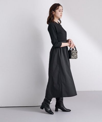 身頃部分はテレコリブの素材でスカート部分は布帛を使用。