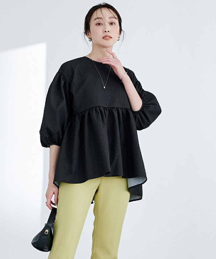 大人なスタイリングを叶えるふくれジャガードトップス。