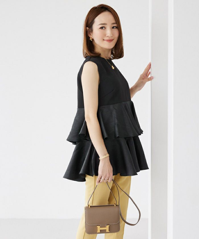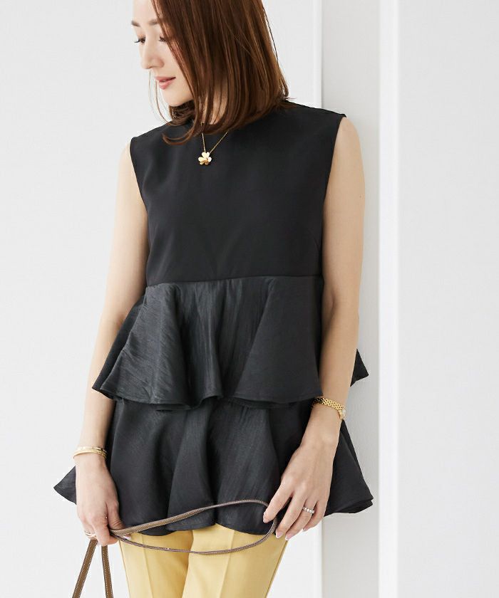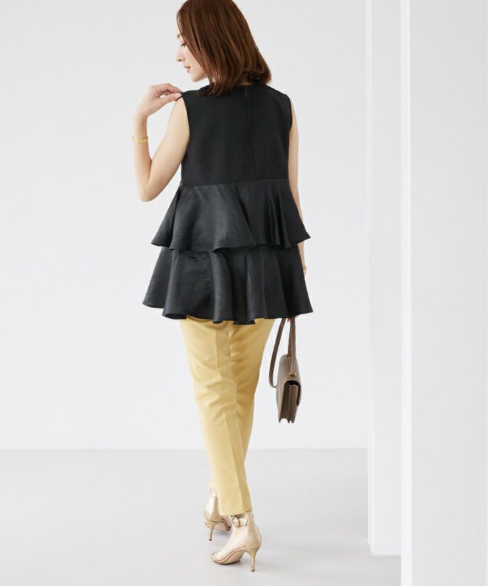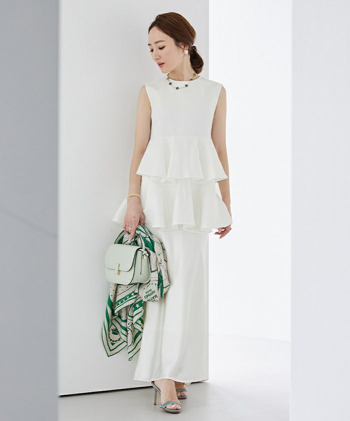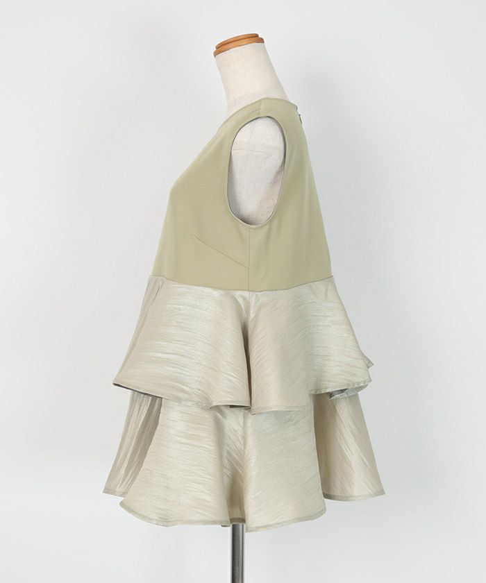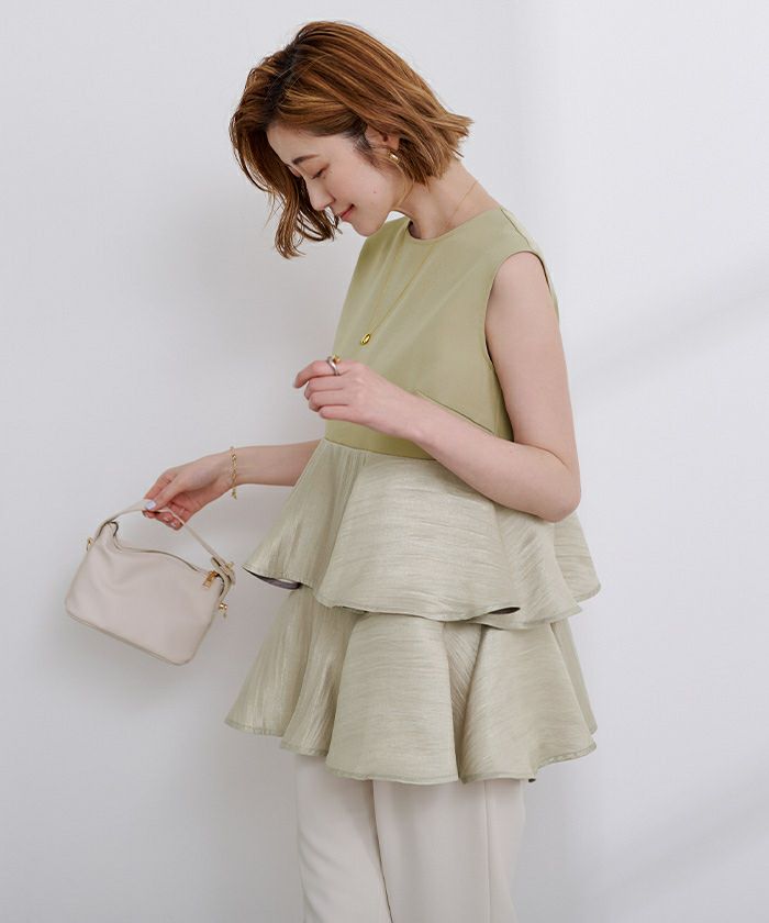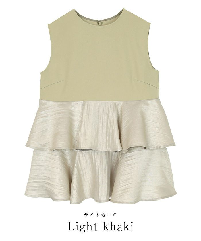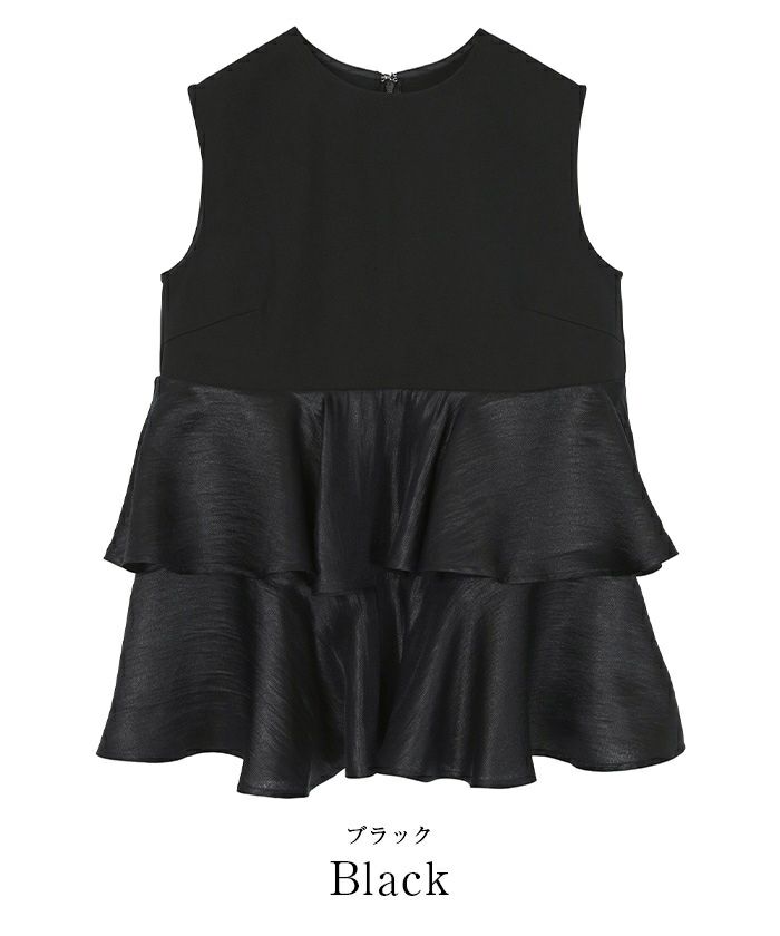 光沢のある素材をティアード部分に使用して華やかな印象に。
