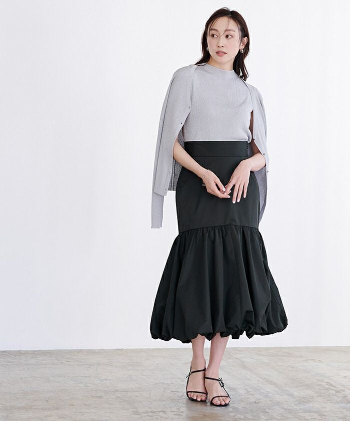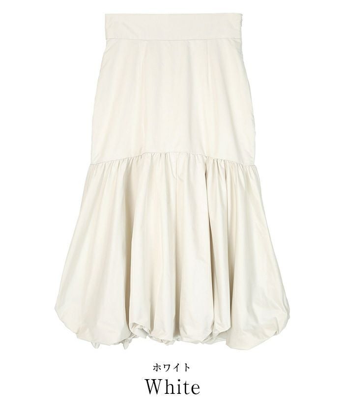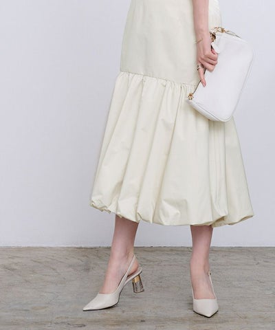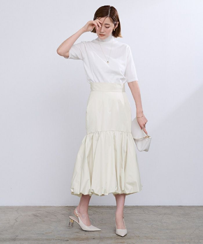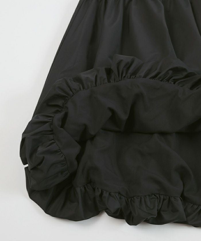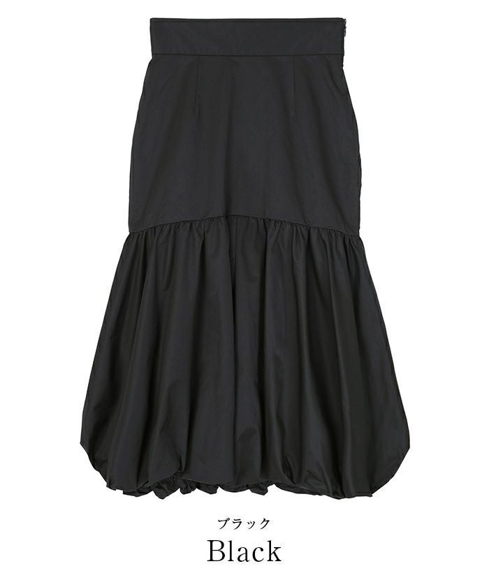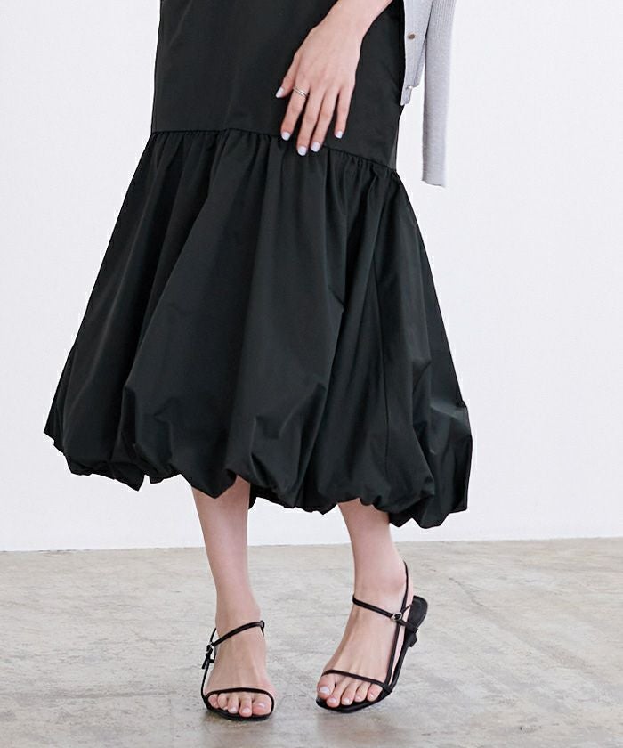 腰回りをすっきりとさせたティアードスカートで裾はバルーンデザインにして今年らしく。