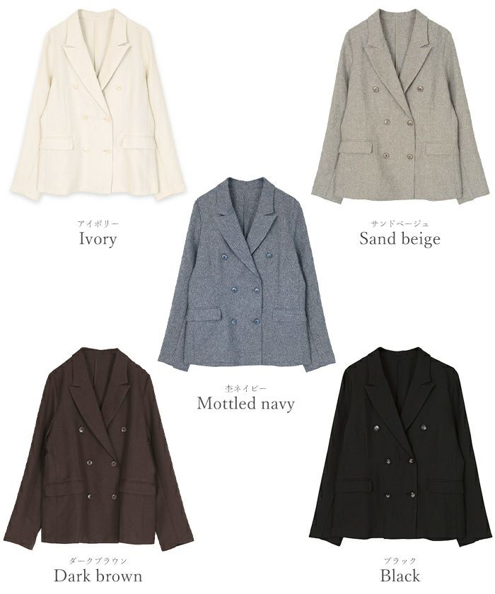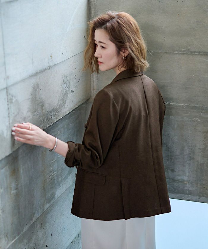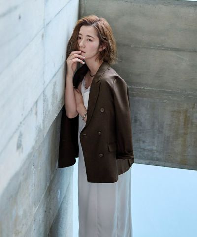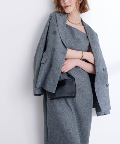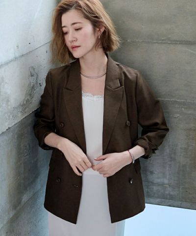 今年らしいピークドラペルのシャープなラインのダブルブレストジャケット。