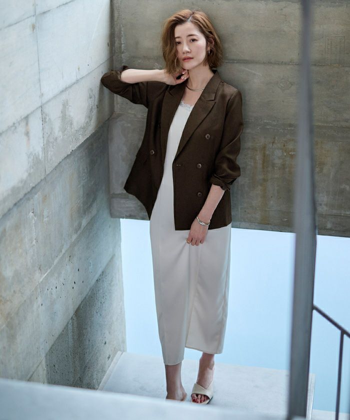 163センチ47キロMサイズ…ダークブラウン リネンシリーズのジャケット3色持ちです! 重たくなく着やすいシワにもなりにくい、凄く気に入っています。 今回購入したダークブラウンは本当に高級感がある色味!リネンシリーズのワンピースやスカートやパンツとセットアップで着るのもいいですが、ジャケットなのでカジュアルなデニムパンツに合わせても違和感はないのです!