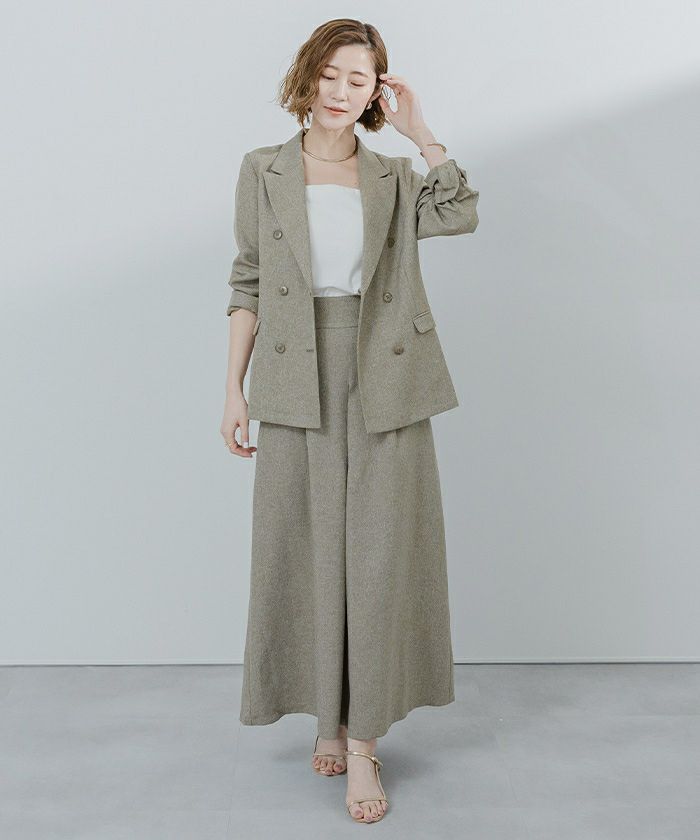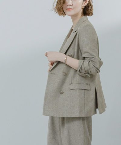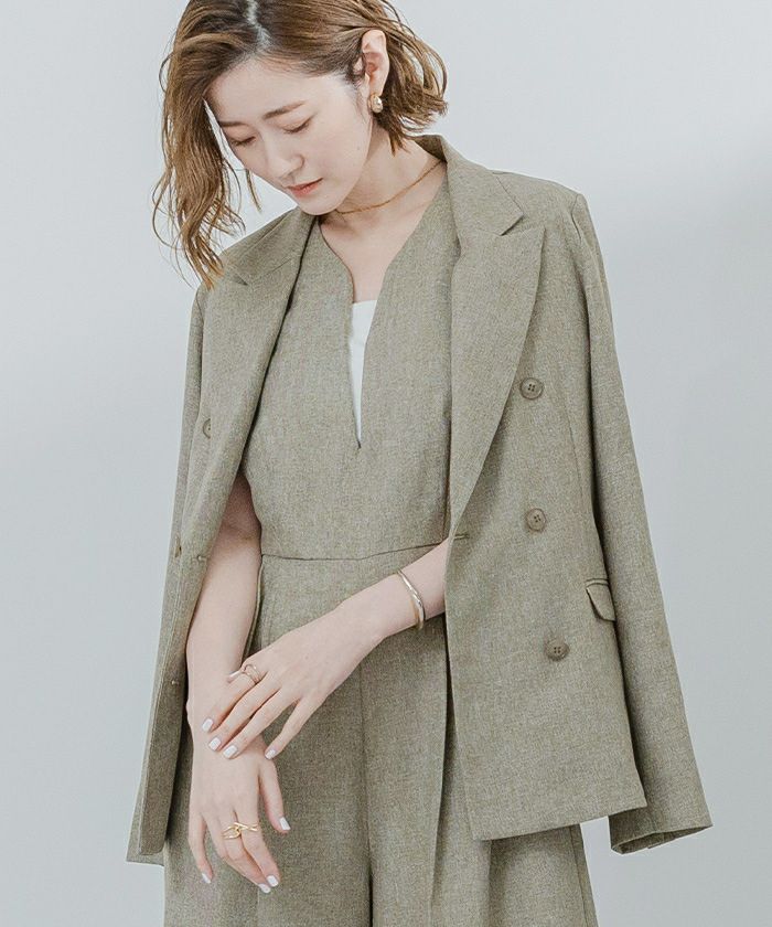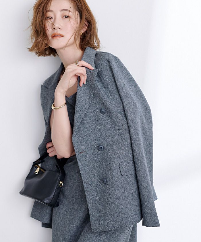 リネンライクシリーズで同素材のアイテムでセットアップで着れる。
