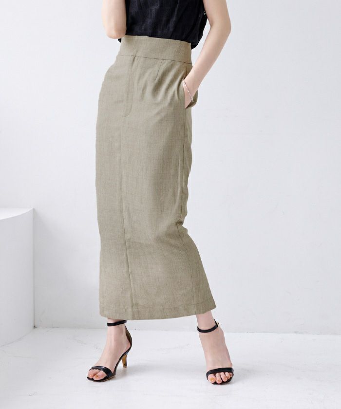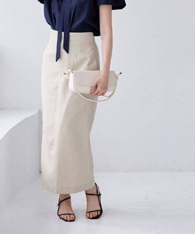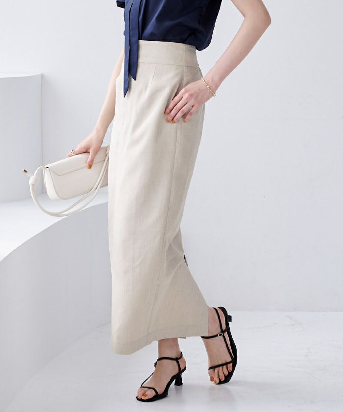 タイトスカートでIラインシルエットでスタイルアップに繋がります。