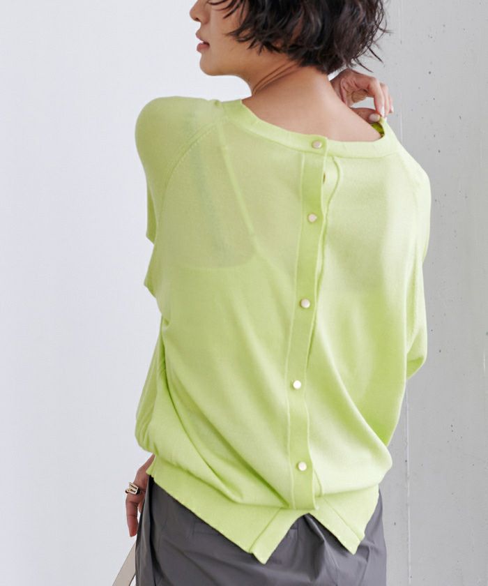 UVケアをしながらオシャレを楽しめるバックゴールド釦ニット。