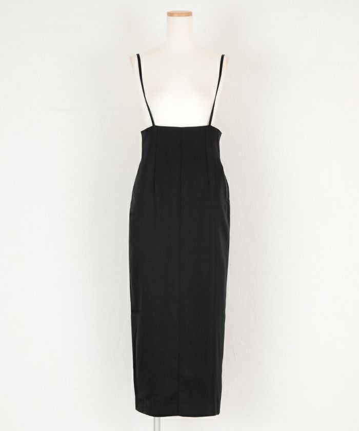 ハイウエストデザインで美シルエットが叶うサロペットスカート。