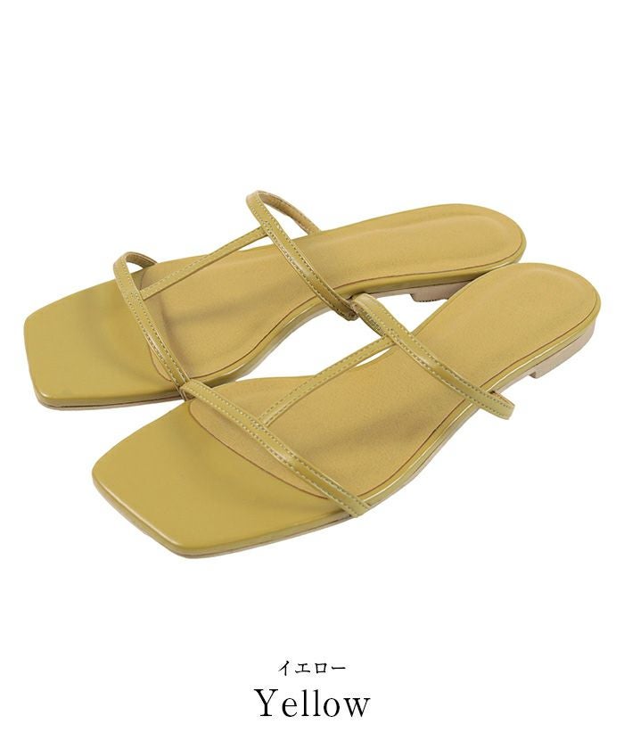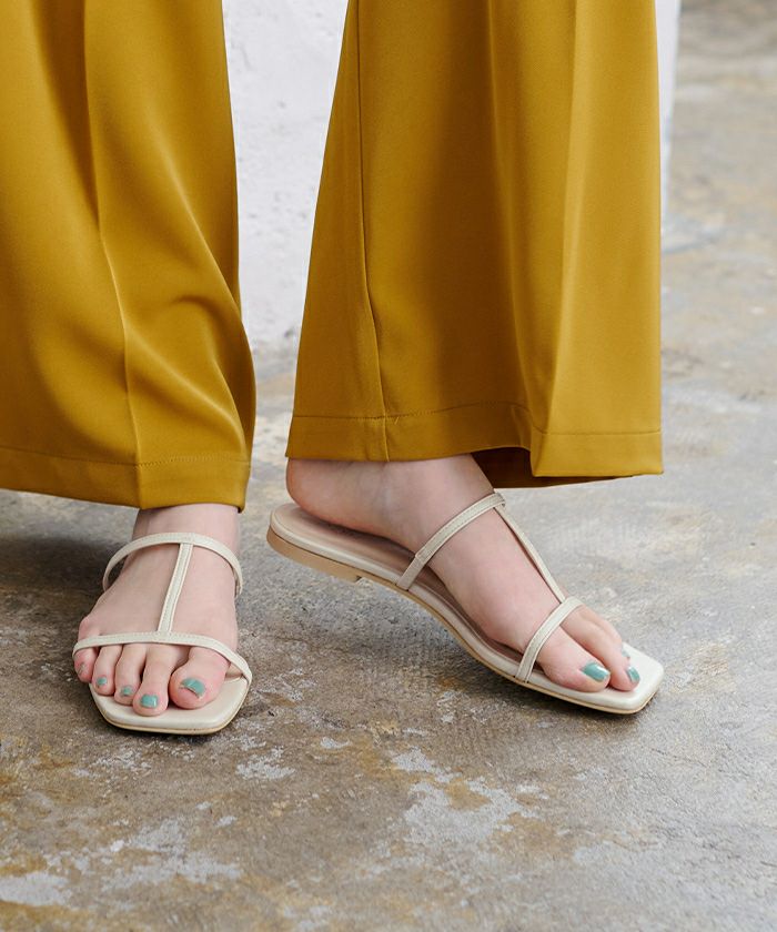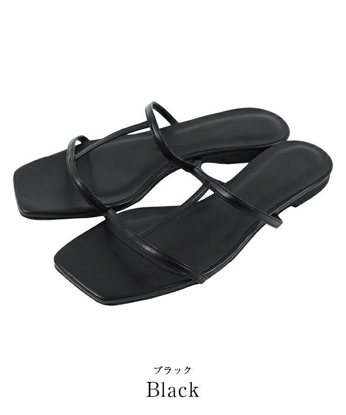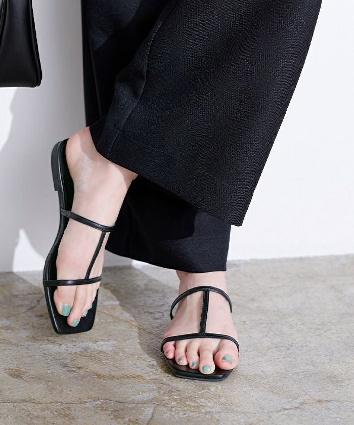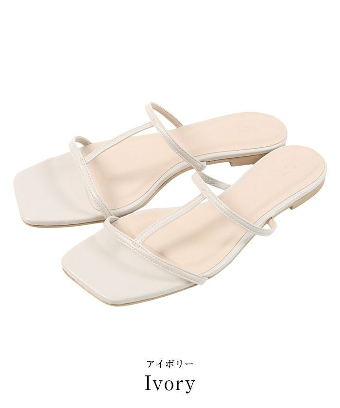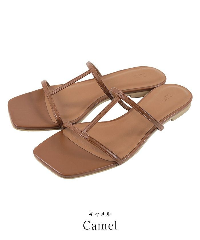 つま先のスクエアトゥがアクセントのフラットサンダル。
