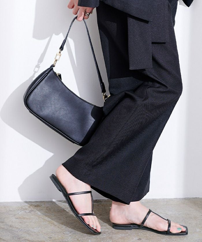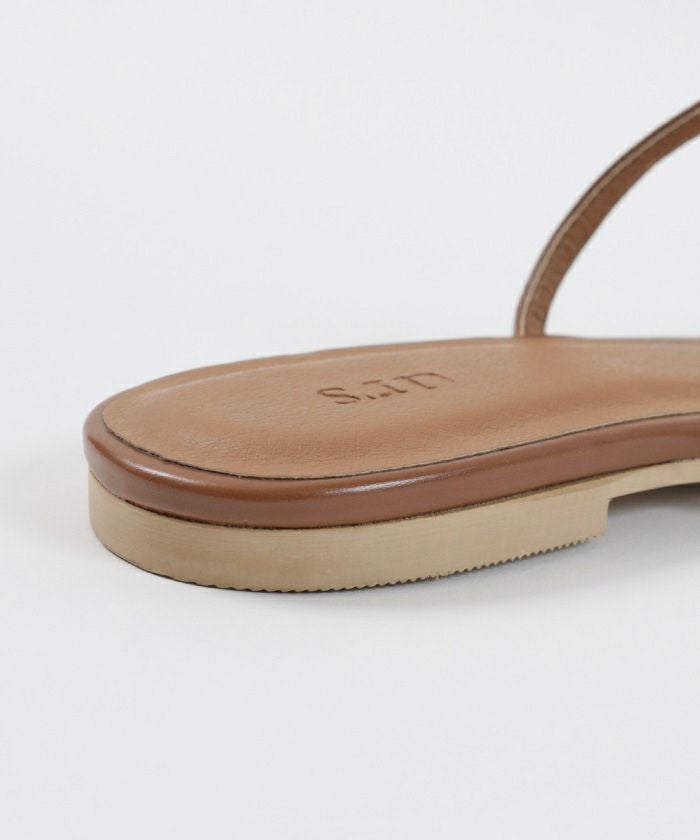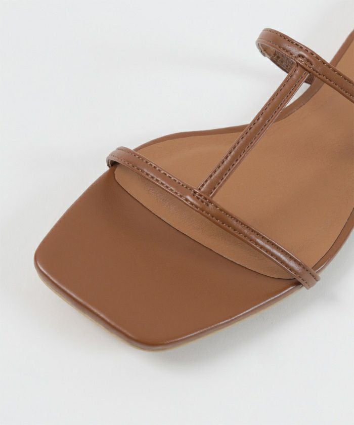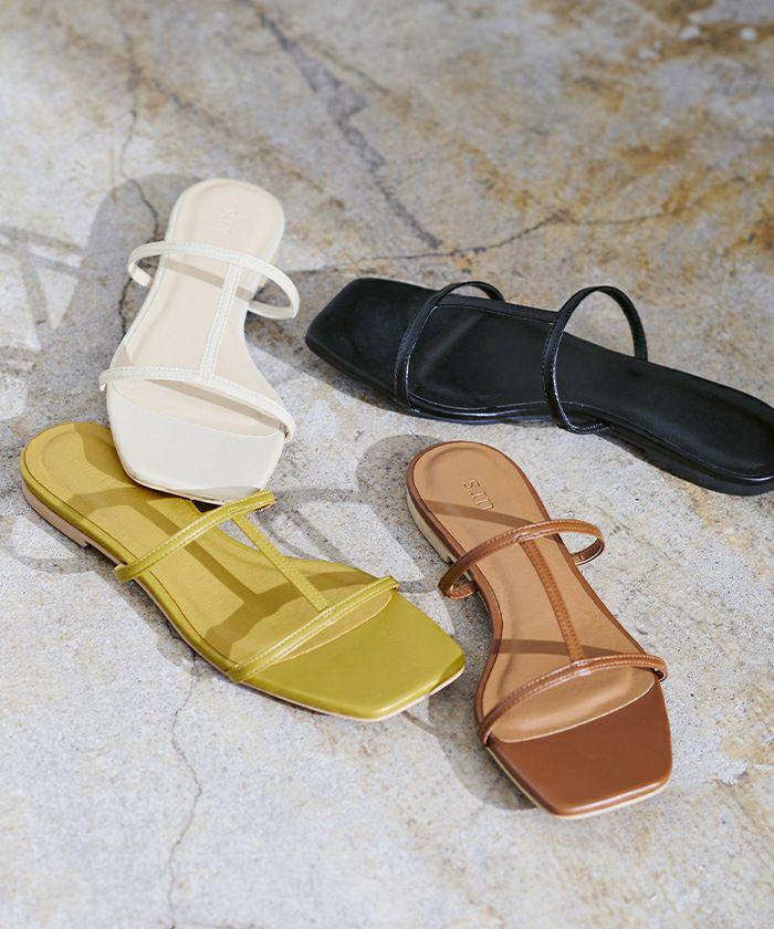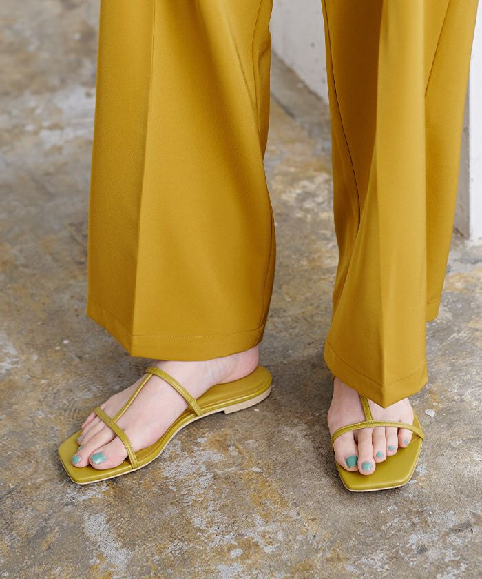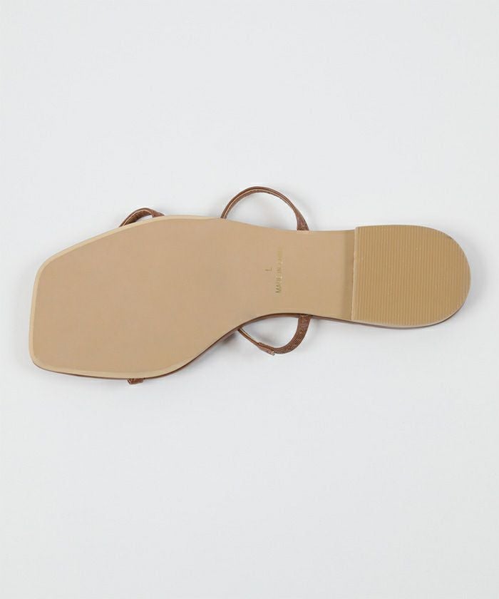 つま先のスクエアトゥがアクセントのフラットサンダル。