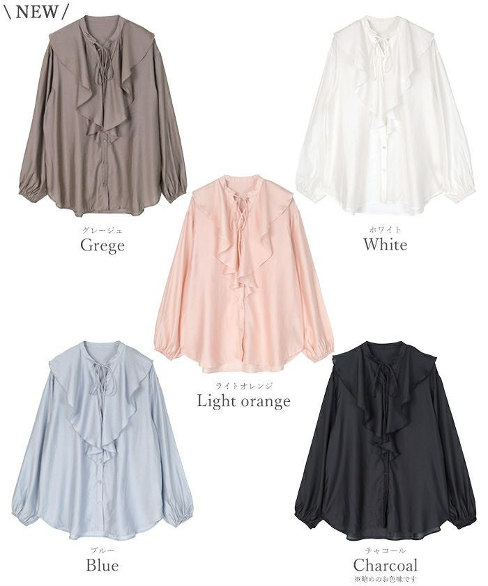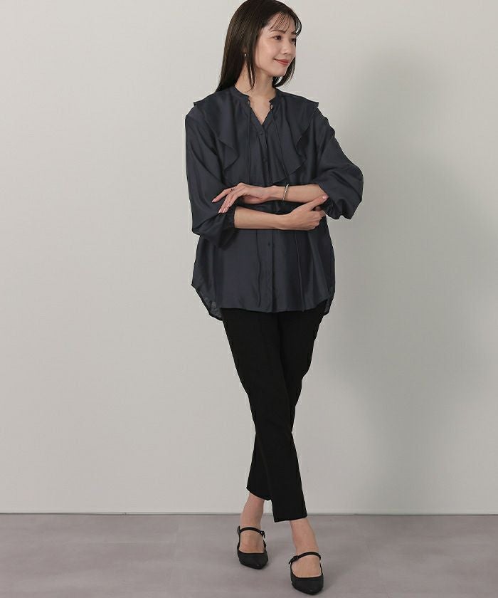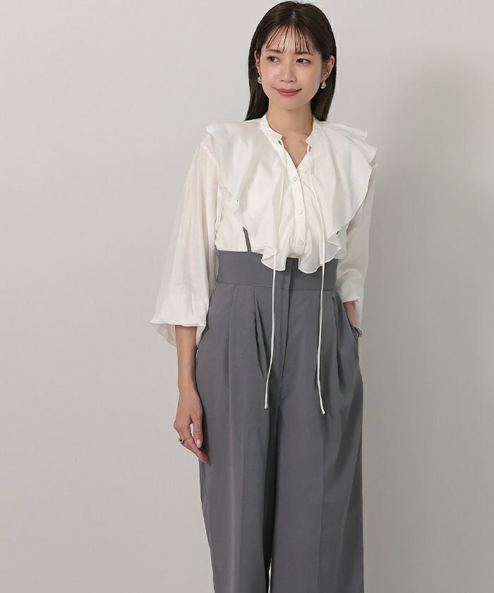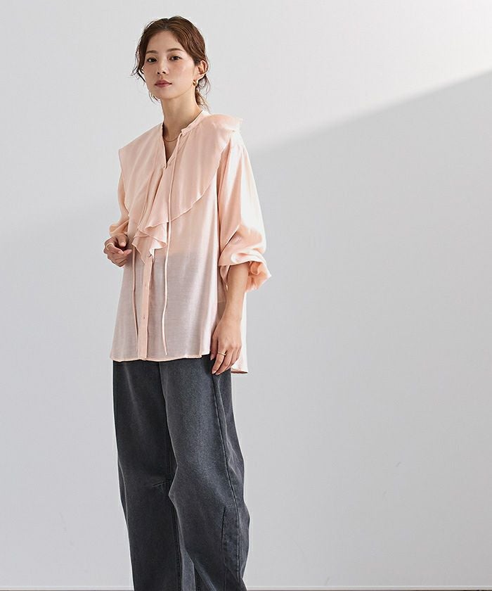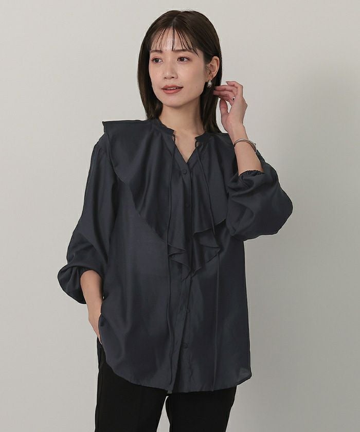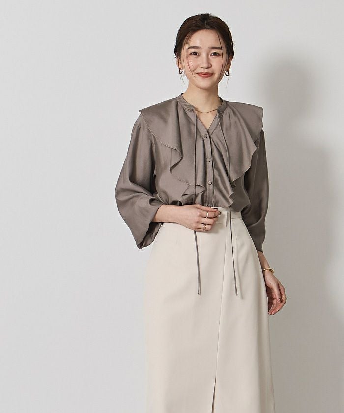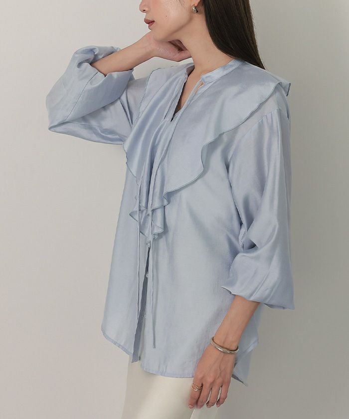 今年のドレッシーなムードに合うラッフルカラーデザインのブラウス。