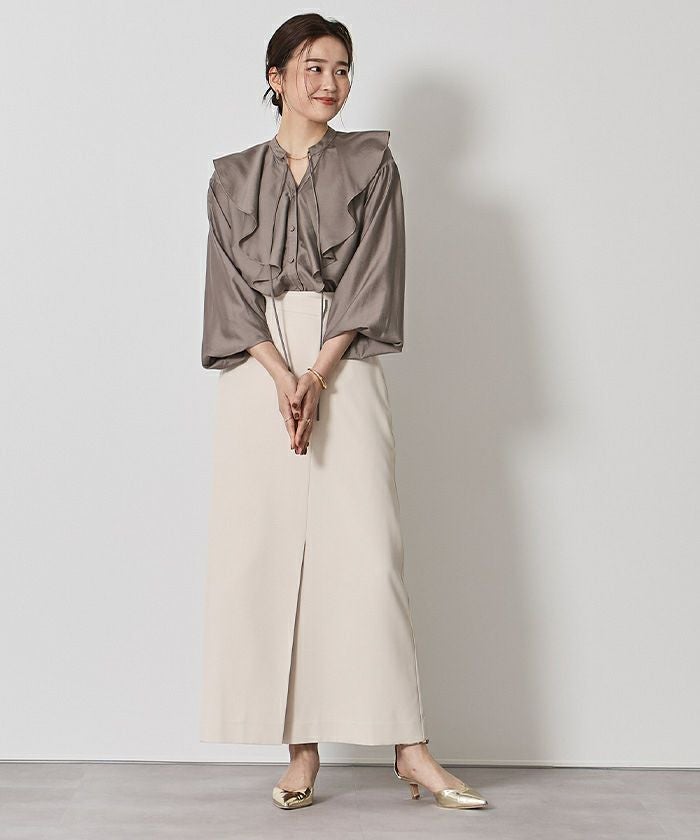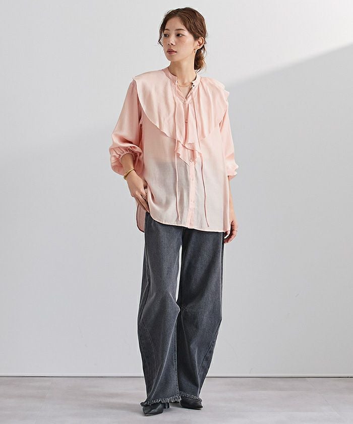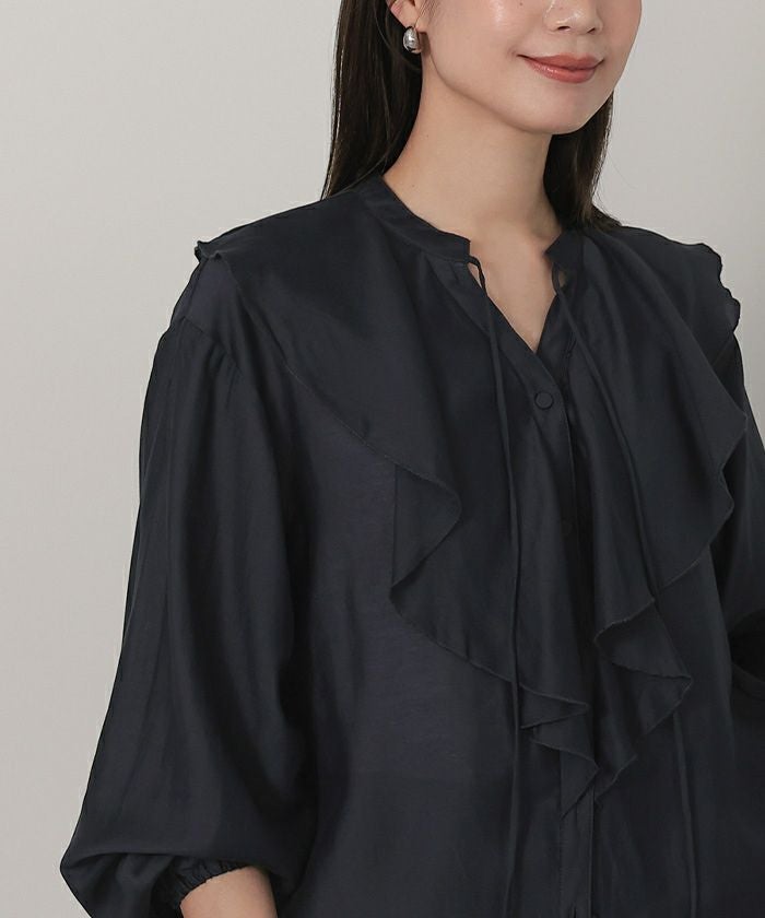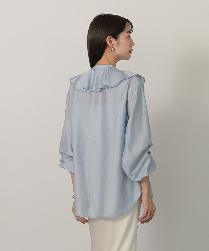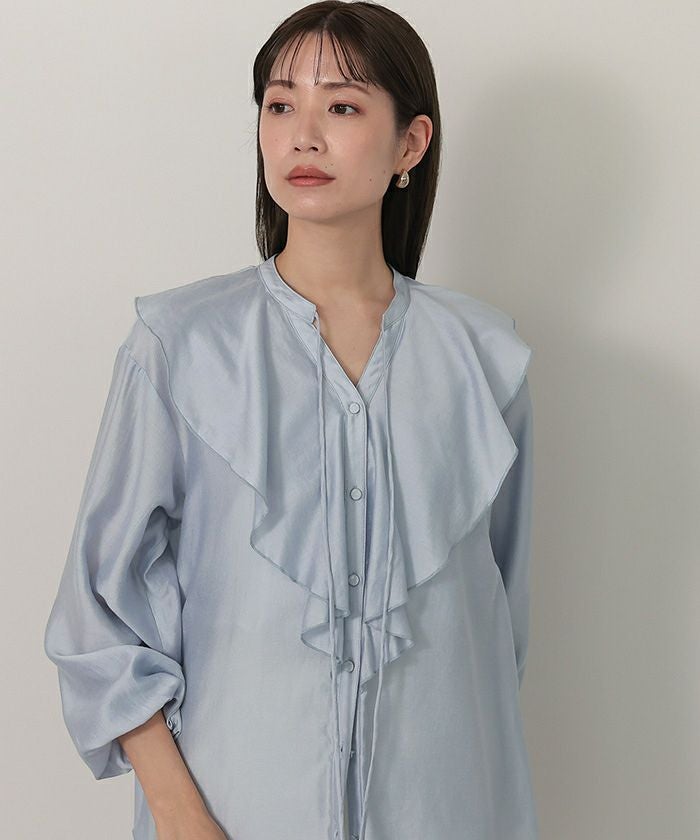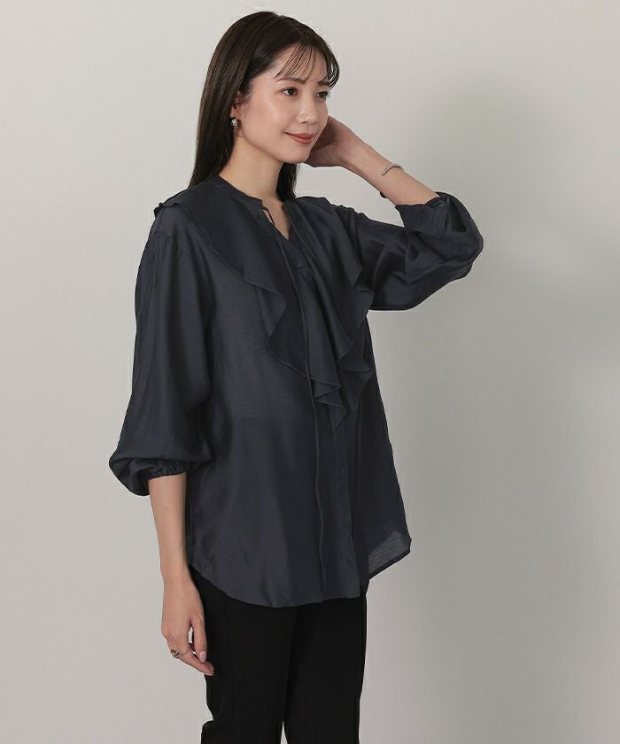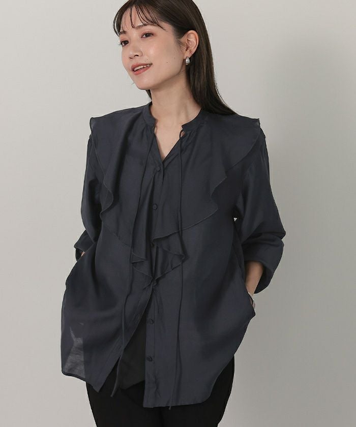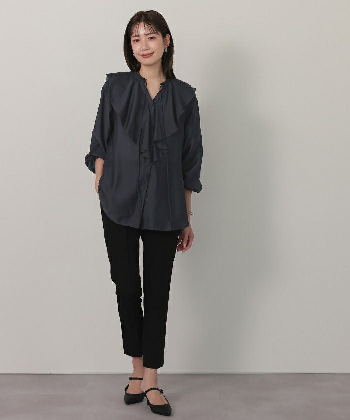 今年のドレッシーなムードに合うラッフルカラーデザインのブラウス。