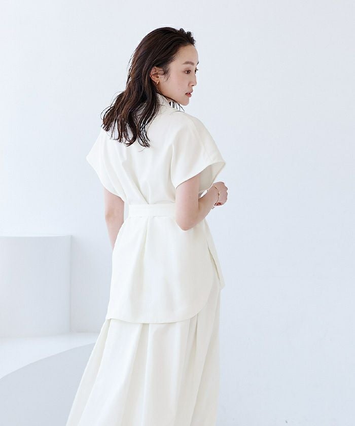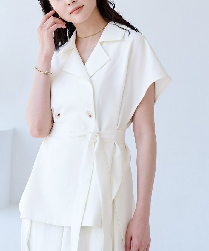 ボタンを留めるとブラウスになる2WAYジレ。