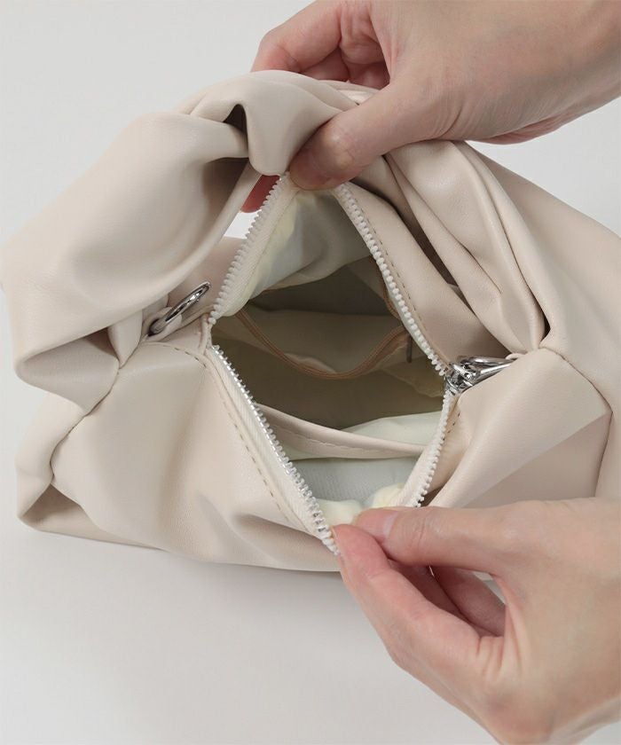 クシュっとした持ち手が可愛いワンハンドルバッグ。