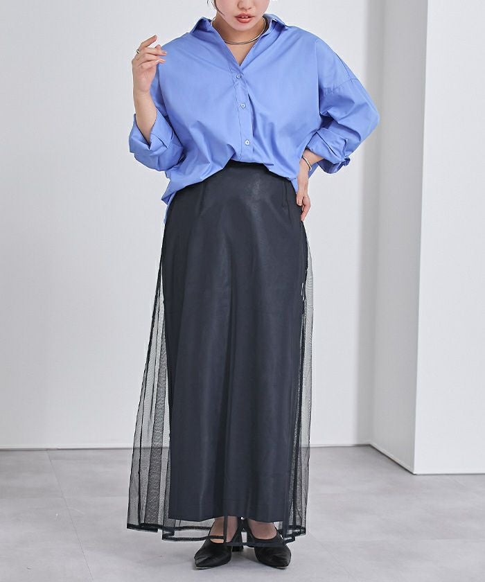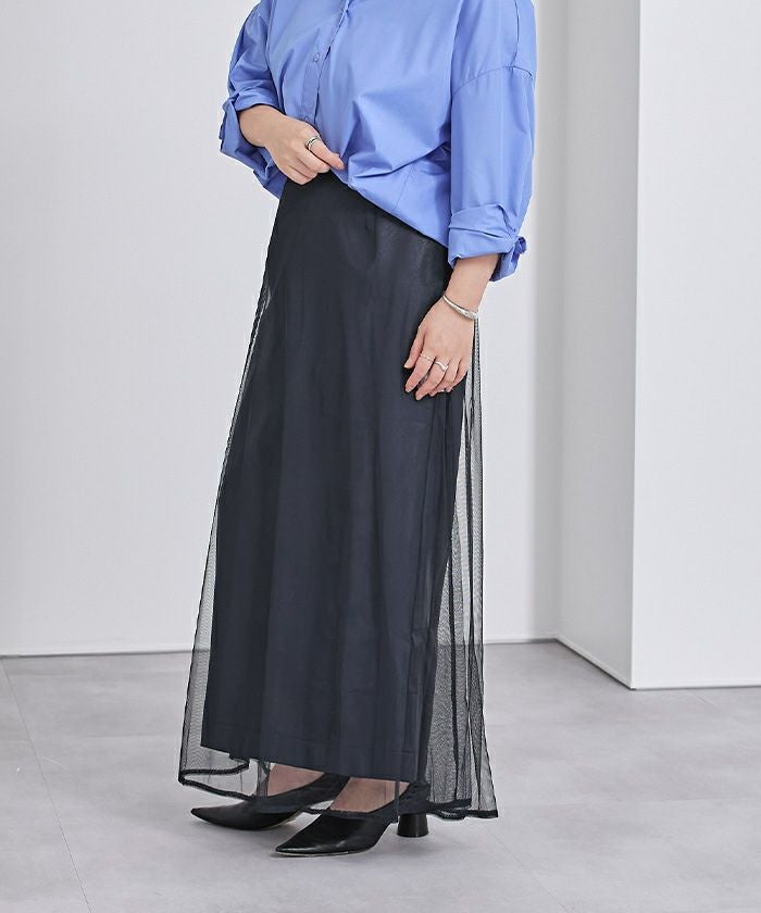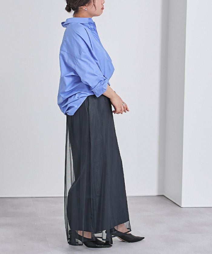 別々での着用も可能で、ワイドパンツの上からチュールを重ねてレイヤードしたり