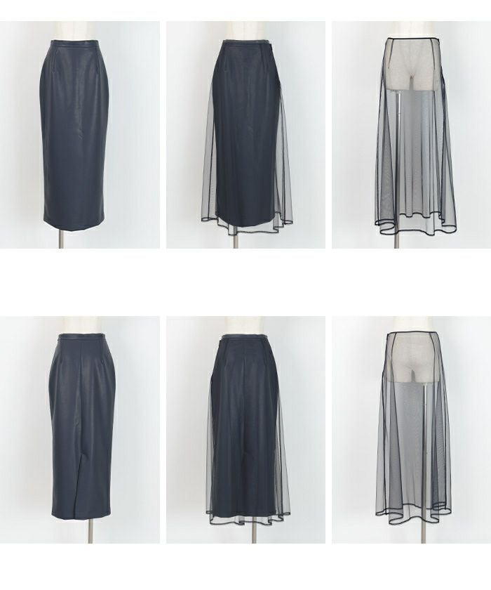 様々なスタイリングが楽しめるチュールとフェイクレザーのスカートセット。