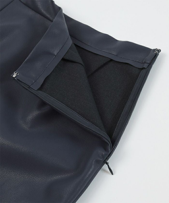 フェイクレザーのベーシックなタイトスカート。