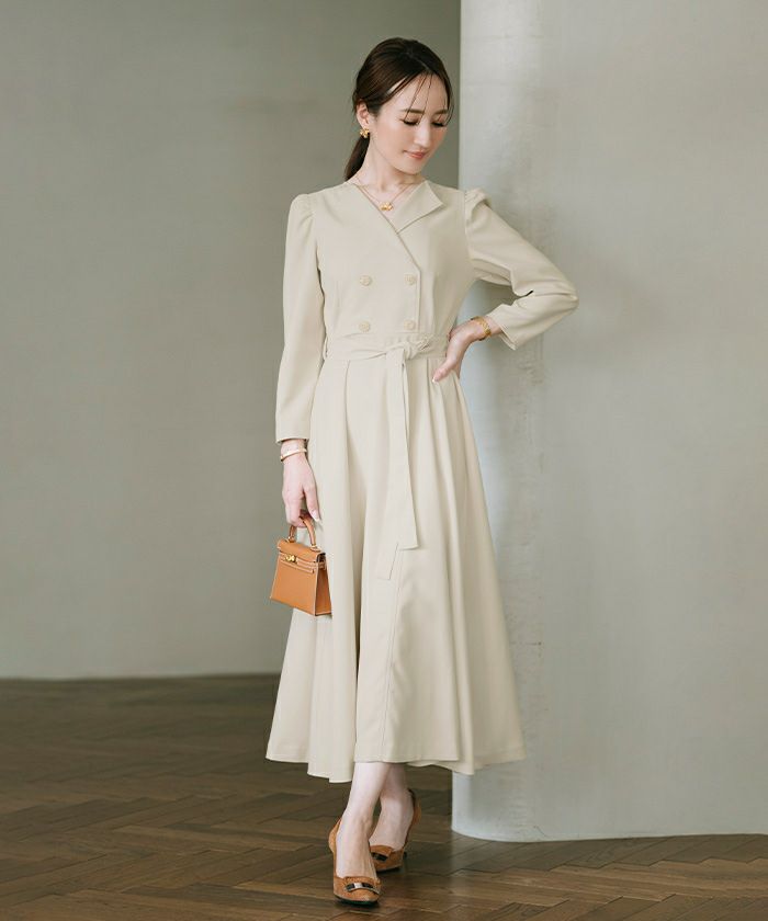 フレアが上品なトレンチワンピース