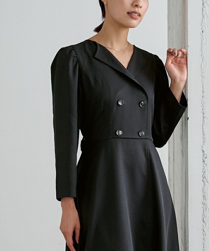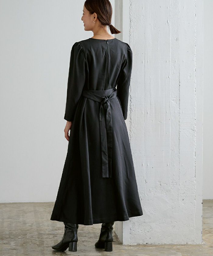 ウエストシェイプしたフィットアンドフレアシルエットで女性らしい印象に。