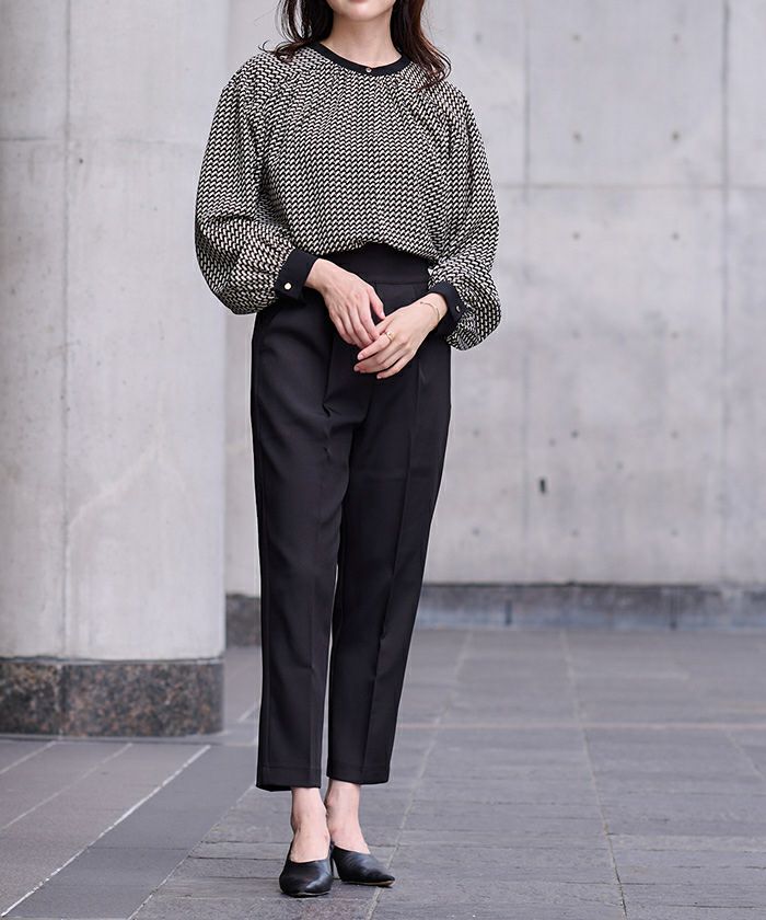 前ウエストにタックを施して立体感のあるテーパードパンツに仕上げました。