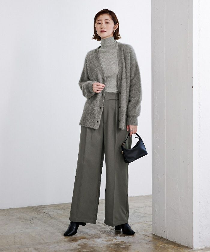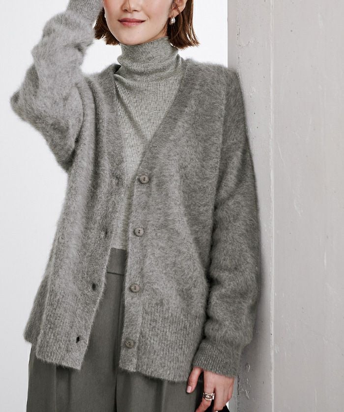 柔らかい毛足のカシミヤブレンドニットでベーシックなデザインが着回しやすいカーディガン