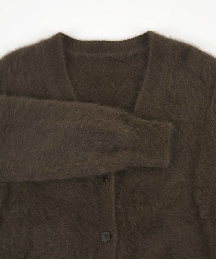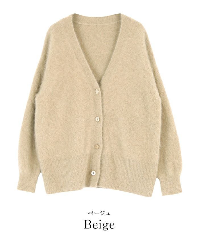 すっきりしたVネックでどんなコーディネートにも合わせやすい程よくオーバーサイズのカーディガンに仕上げました。