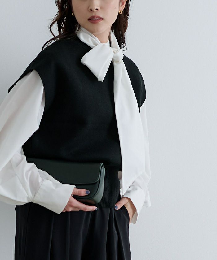 きちんと感のあるクルーネック。