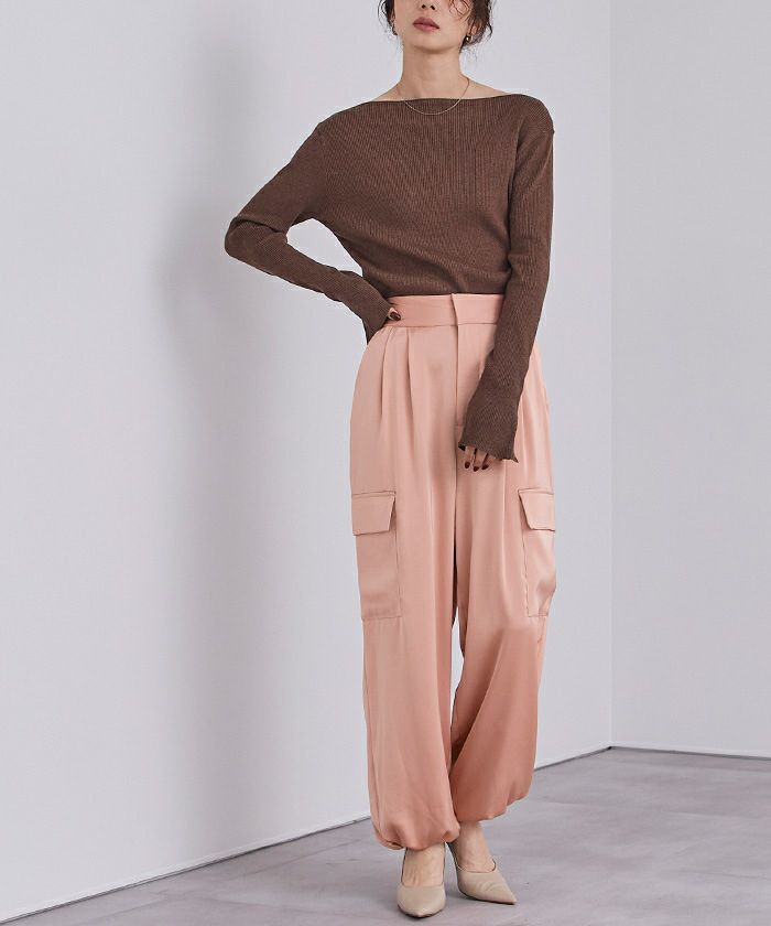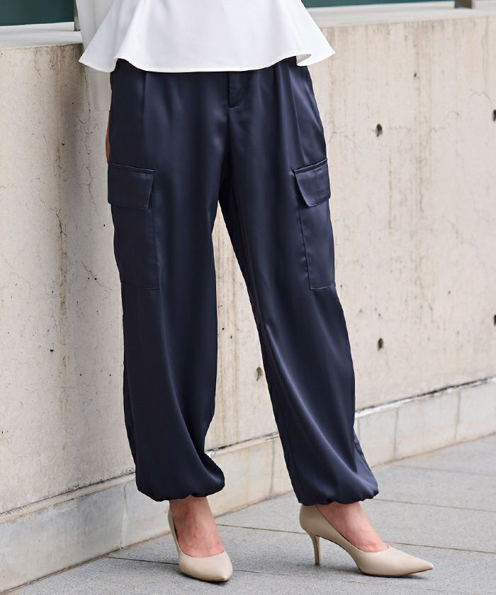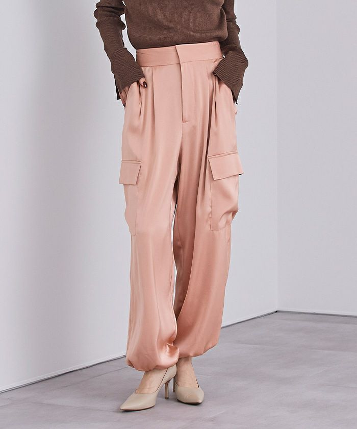 トレンドのパラシュートパンツをサテンの生地で上品に仕上げました。