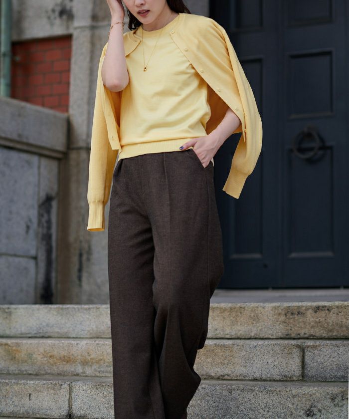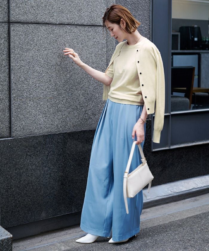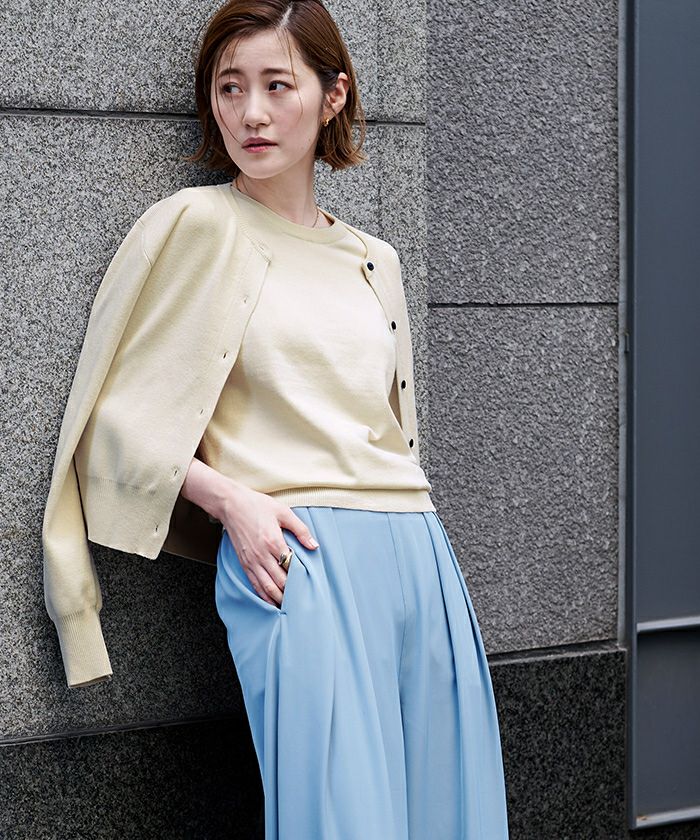 ハーフスリーブニットと一緒に購入しました。 アンサンブルでコーデが決まるので重宝してます。 生地も柔らかく気に入りました。