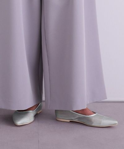 シアーの素材がポイントのシンプルなフラットシューズ。