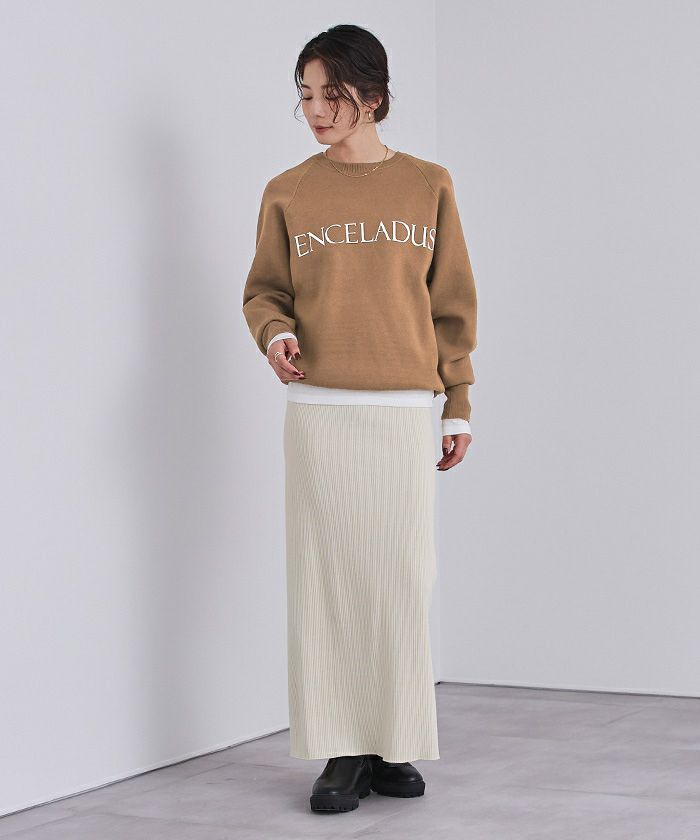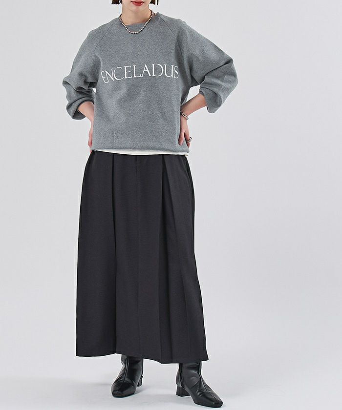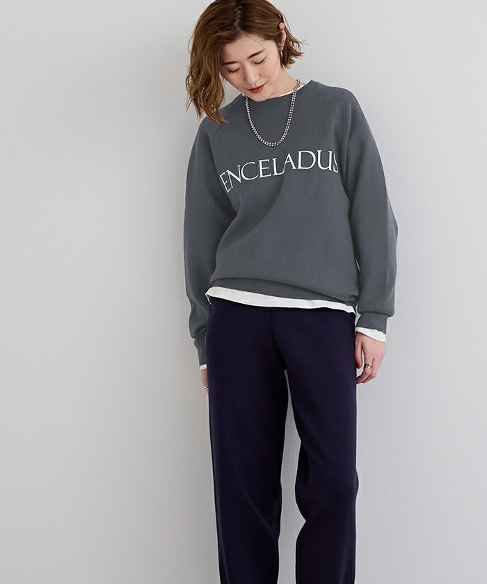 スウェットライクのニットで程よく女性らしい印象に。